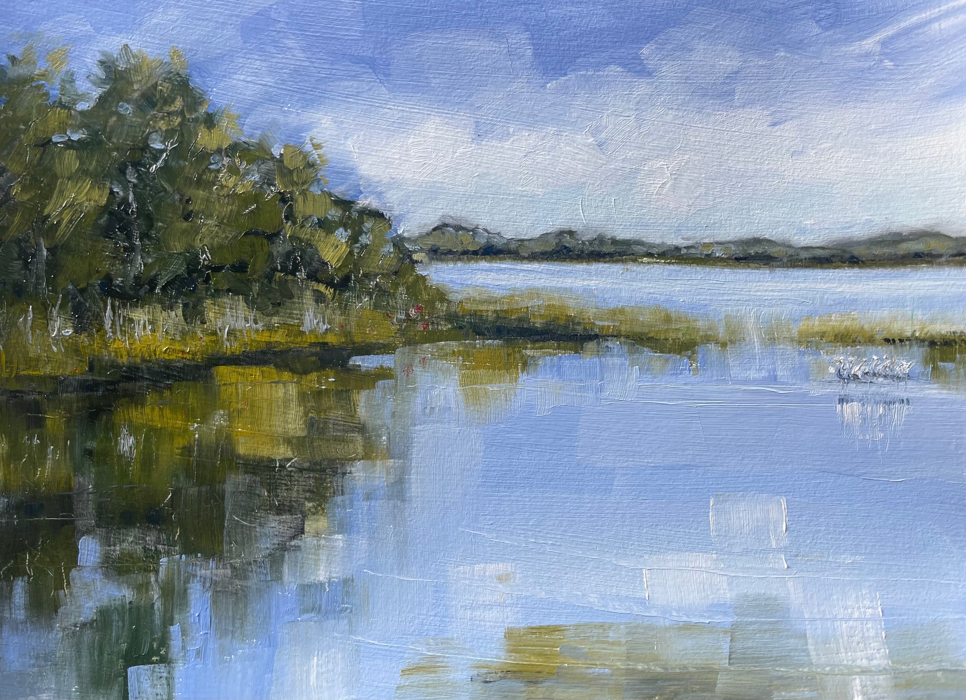 A flock of egrets flew over whilst I painted this beautiful tranquil scene of Wamberal Lagoon & that’s how they ended up in the painting! Enjoy the pure liquid reflections to bring a splash of colour and a sense peace to your home.