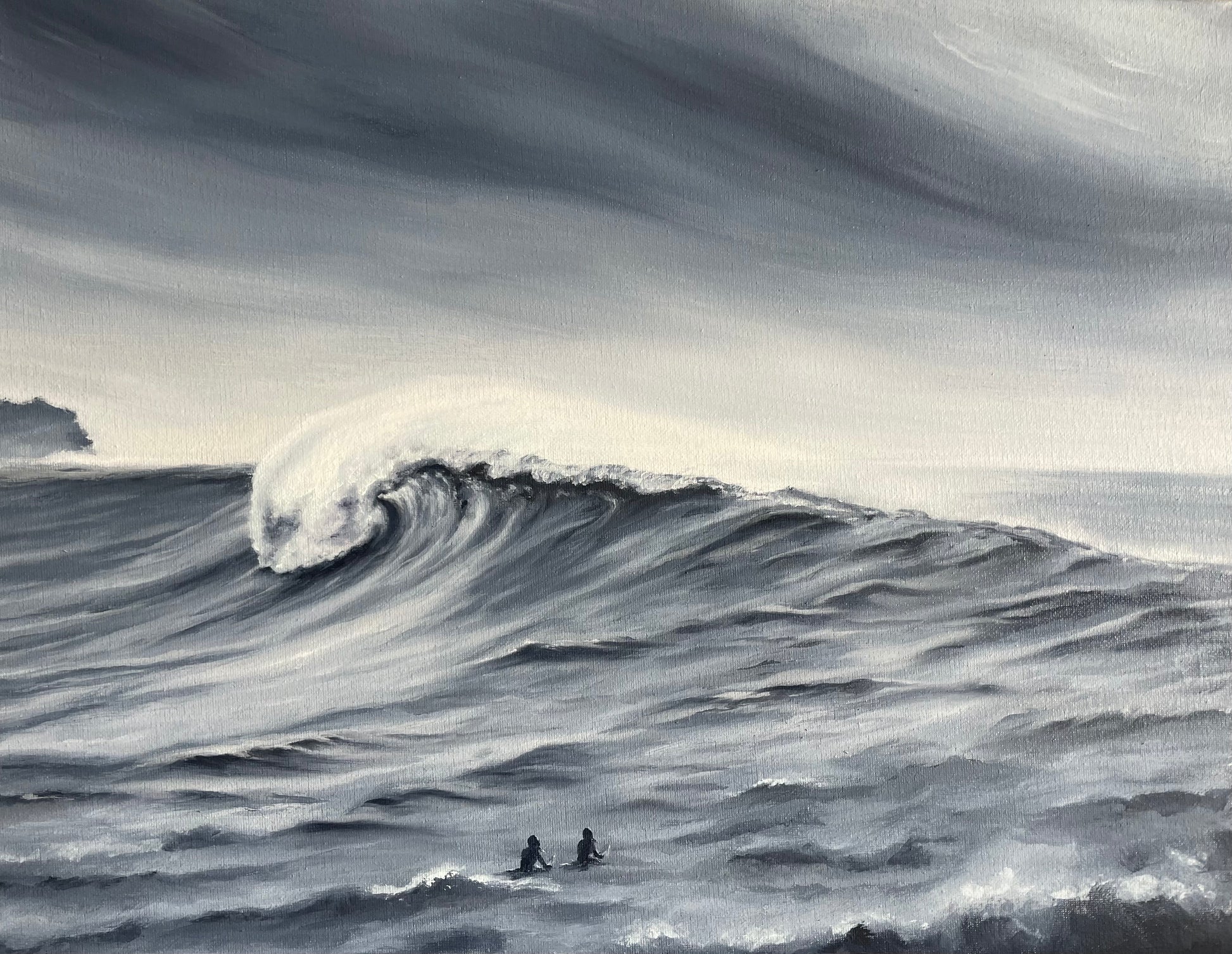 Feel the energy of winters waves as this huge sets rolls across the stormy sky. Its almost as though you are out there with the girls waiting out this set!