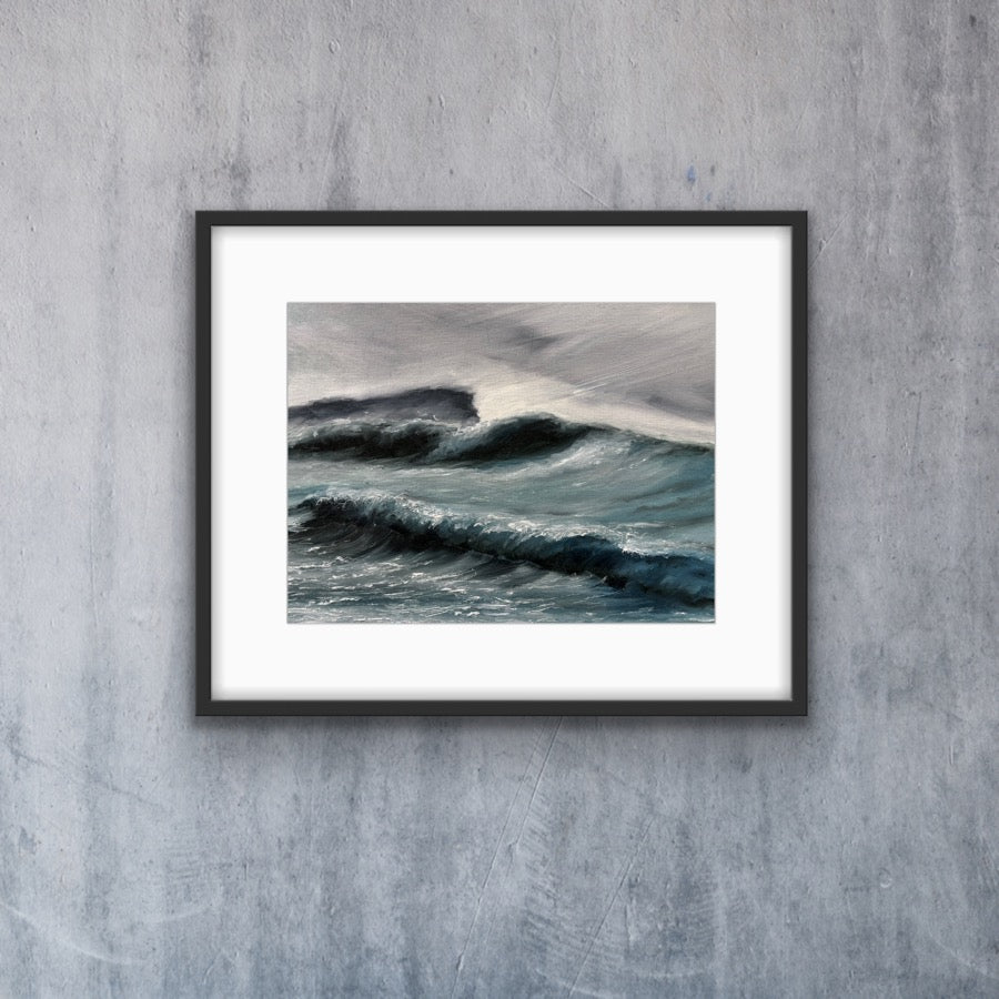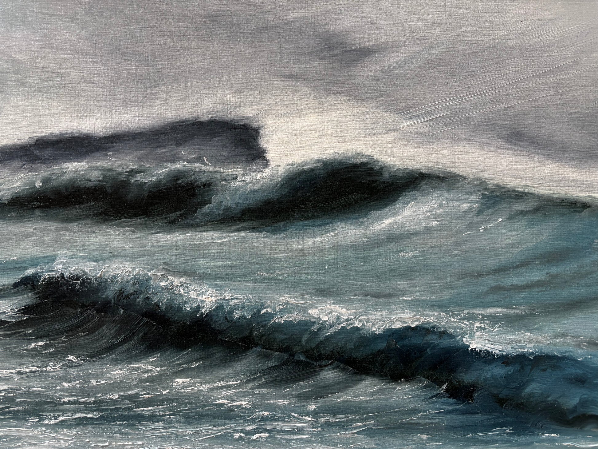 Wild windswept skies & the low light illuminating aqua and green depths of the ocean. The dramatic light of the evening